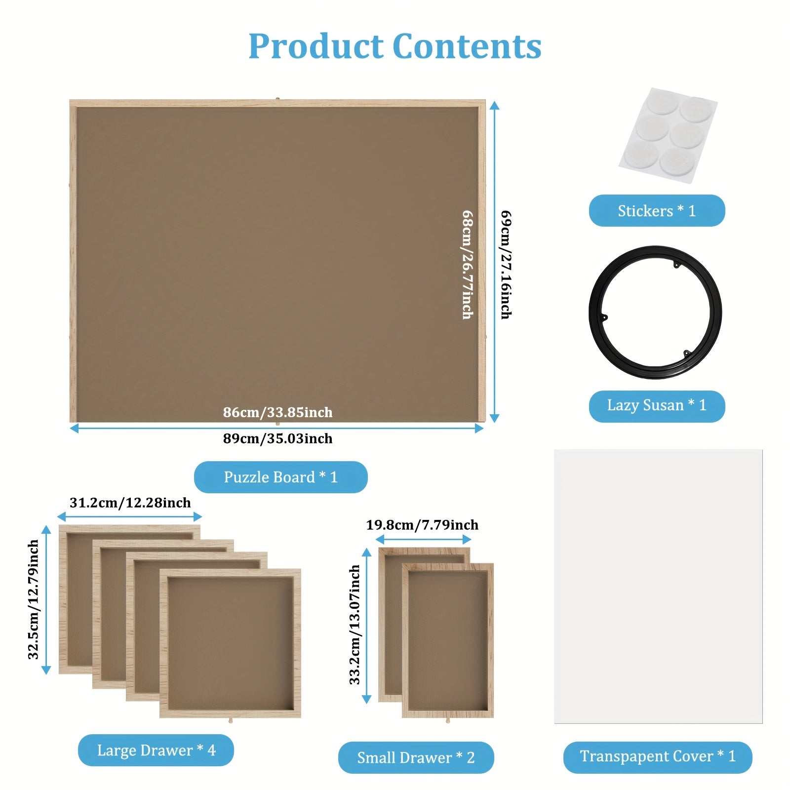 Experience puzzle-solving on a grand scale with the Deluxe 35x27 Inches Wooden Puzzle Board. Designed as a portable, all-in-one solution, this board features 6 rotating drawers and a built-in jigsaw organizer to keep your pieces organized, accessible, and ready for the next move.