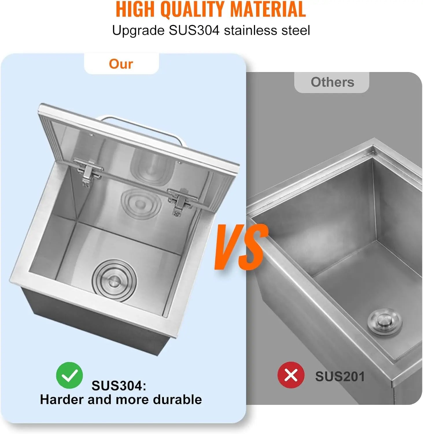 Crafted from SUS304 stainless steel, this ice bin is not only durable but also resistant to rust and corrosion, ensuring it stands the test of time. The sleek silver finish adds a touch of elegance to any outdoor space, making it an ideal addition to your patio or deck.