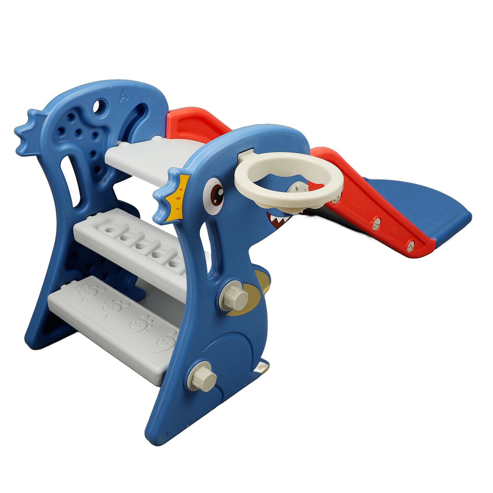 Foldable Dinosaur Shape Indoor Slide with Basketball Hoop for Toddlers Easy Assembly Blue Climber for Ages 3 to 6 Years
