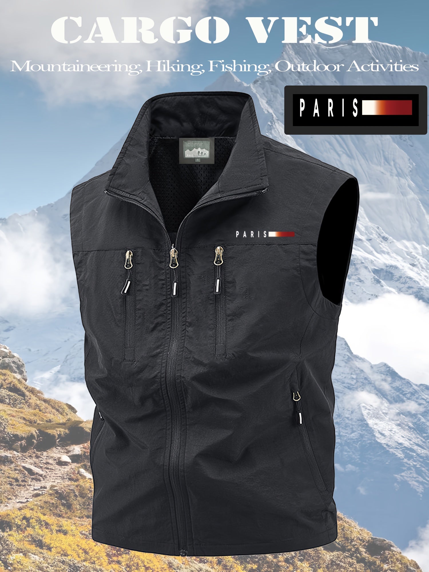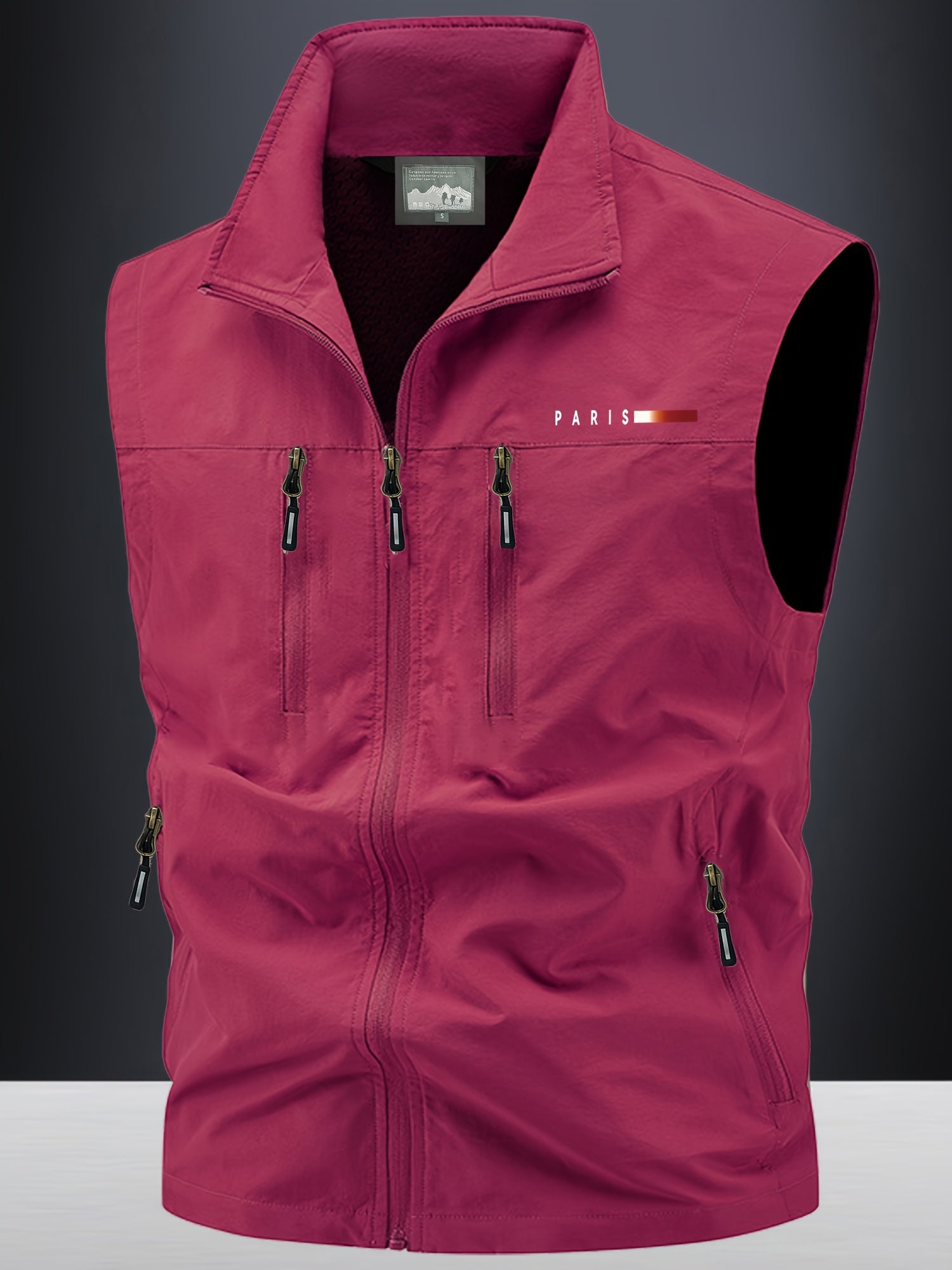 Upgrade your wardrobe with a practical, stylish vest that combines a standout print, functional pockets, and easy-care fabric. Embrace effortless cool with the Paris Print Stand Collar Vest and enjoy all-day comfort on the go.