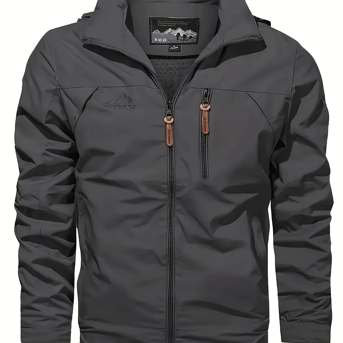 Men's Windproof Hooded Jacket Zipper Pockets Nylon Coat