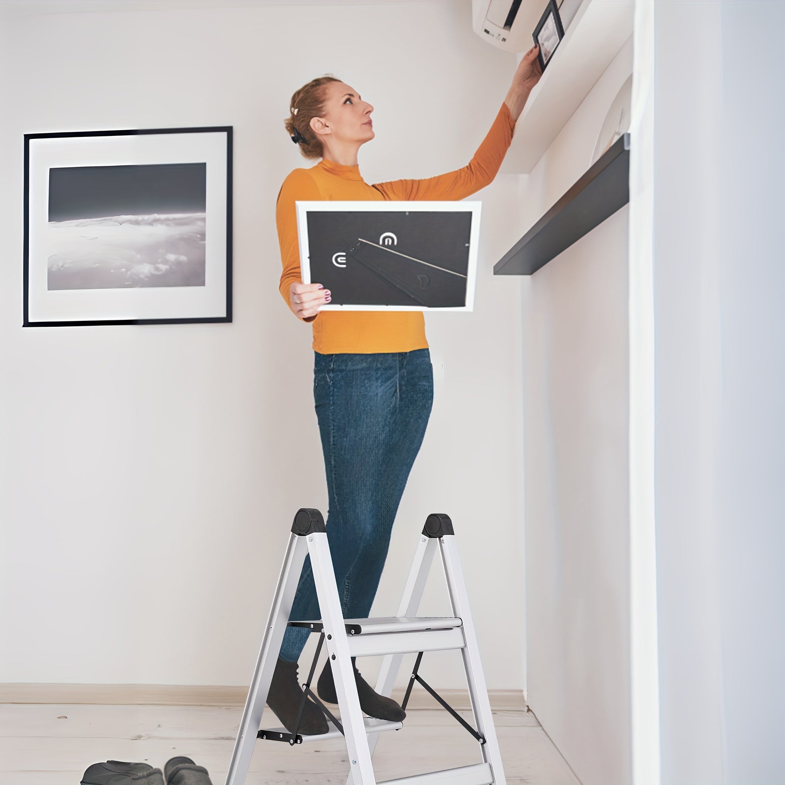 Introducing the MoNiBloom Portable 2 Step Ladder—a sleek, aluminum two-step solution crafted for homes and kitchens. With a sturdy 330 lb capacity and a wide, comfortable platform, this ladder makes reaching shelves and cabinets safer and easier. Its folding design means you can store it out of the way in moments and take it wherever you need a trustworthy step up.