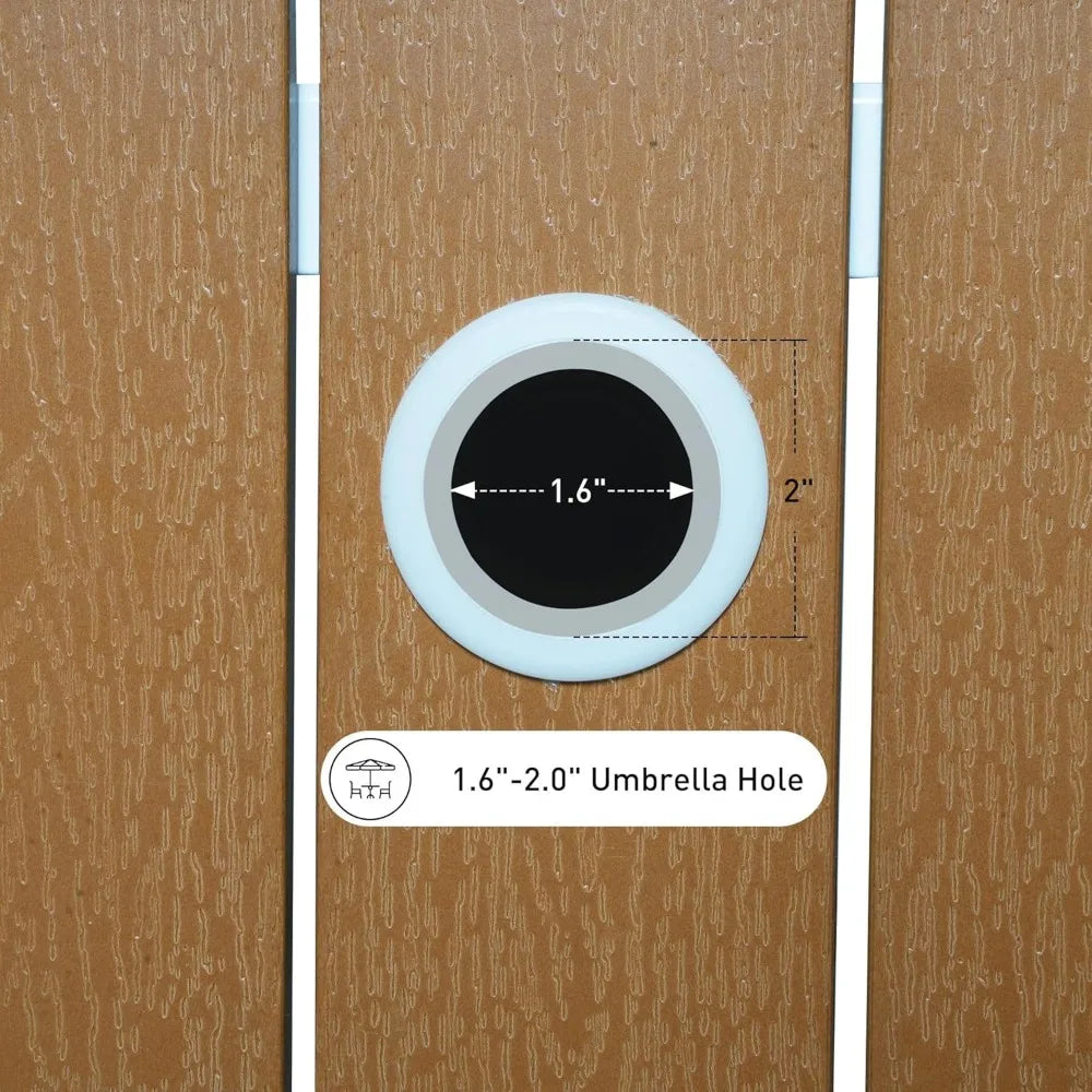 One of the standout features is the adjustable umbrella hole, which ranges from 1.6” to 2”, offering flexibility to fit various umbrella sizes. This thoughtful design allows you to customize your shading options effortlessly, providing comfort and protection from the sun throughout the day.