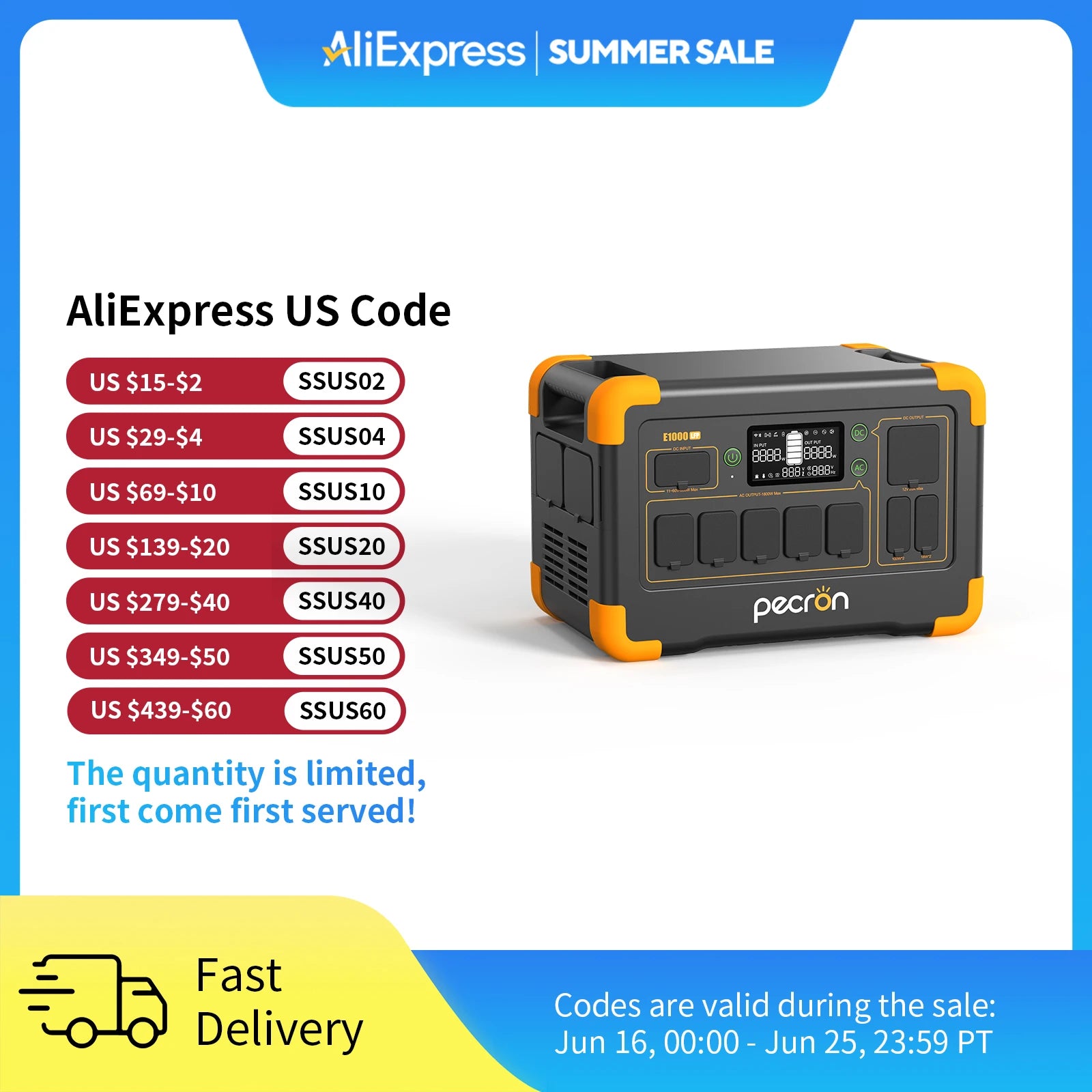 Pecron E1000LFP Portable Power Station 1024Wh LiFePO4 Battery Backup 1800W Solar Generator Expandable Fast Charging
