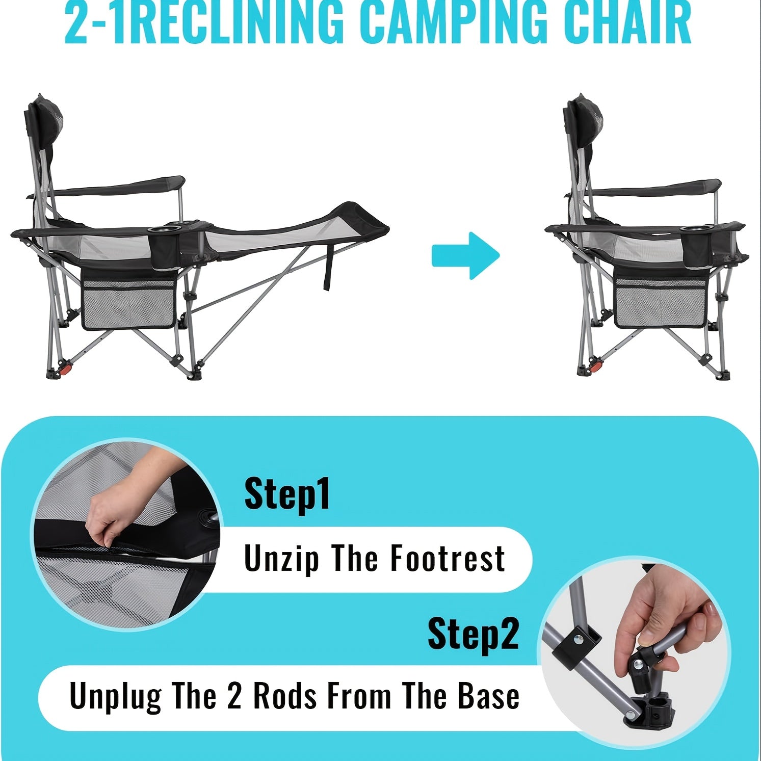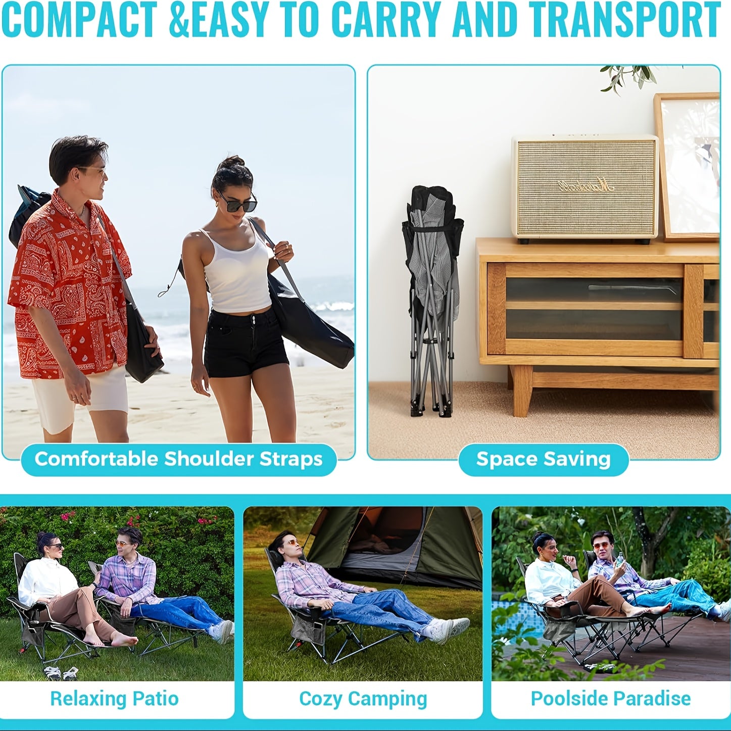 UPWELL Portable Folding Patio Chair With Carry Bag Adjustable Height Removable Footrests Outdoor Lounge Chair